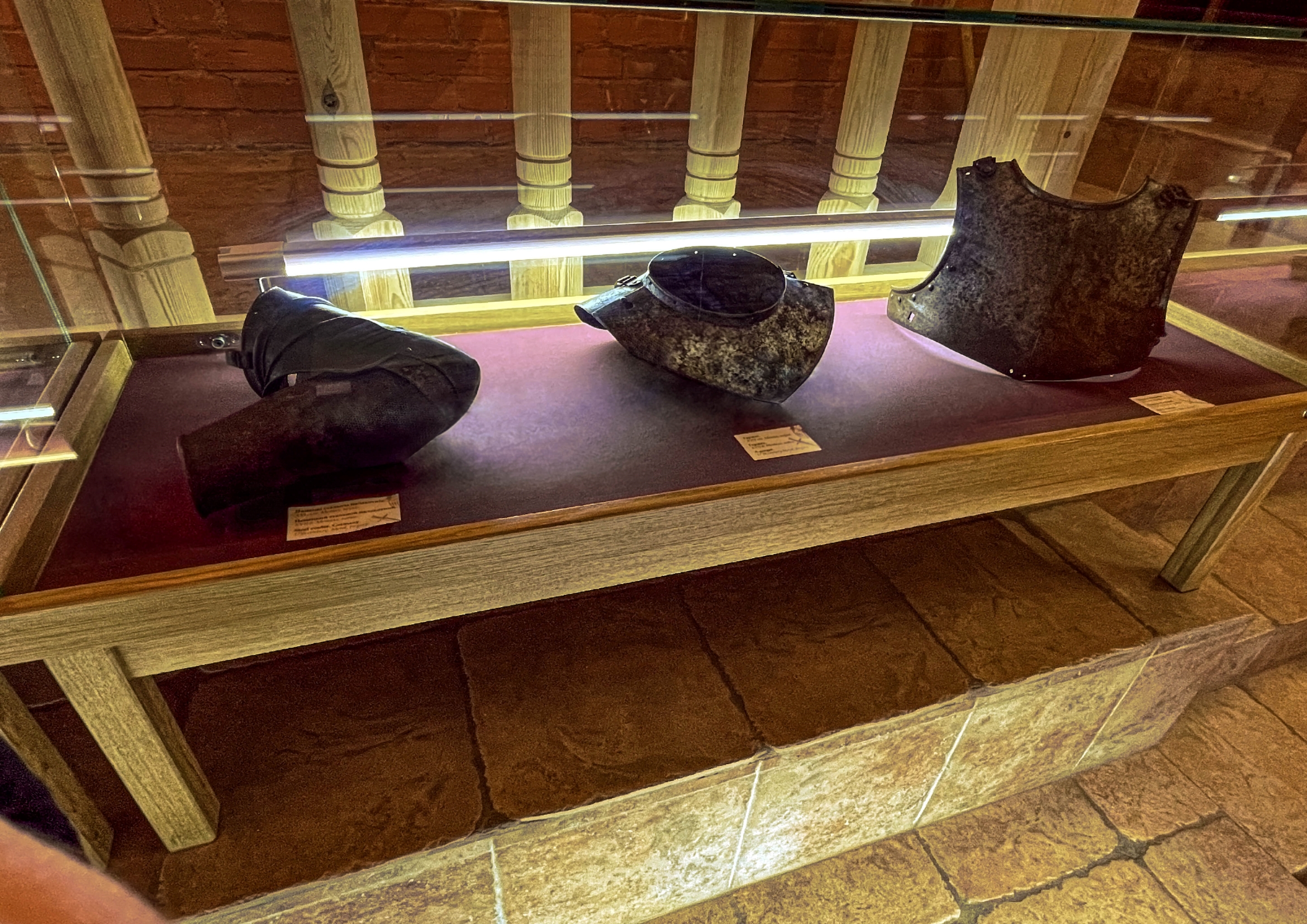 Кіраса XVI стагоддзя з характэрнай меткай ад пісталетнай кулі, атрыманай падчас “вытворчых выпрабаванняў”, альбо ў баі. Пры пападанні ў рабро калянасці пісталетная куля такую браню не прабіла б нават ва ўпор.