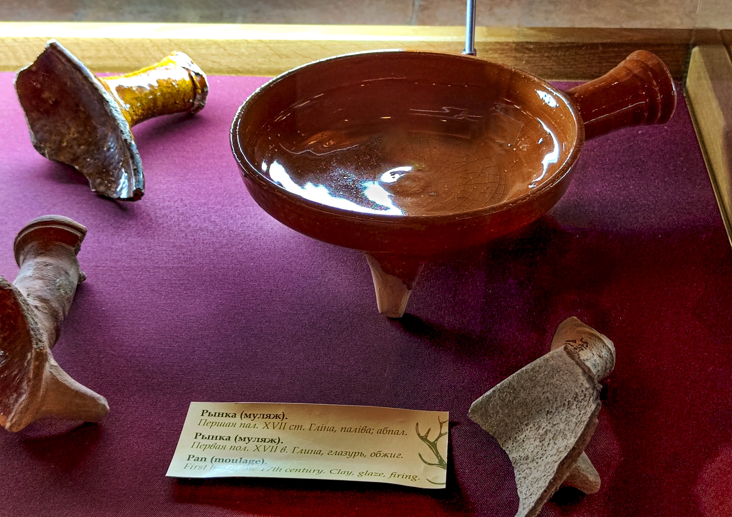 За гады раскопак у Лідскім замку сабрана вялікая колькасць кухоннага і сталовага посуду канца XVI – першай паловы XVII стагоддзяў: талеркі, міскі, чаркі, кубкі, спецыяльныя ёмістасці для прыпраў, пляшкі. Пры нанясенні дэкору майстры выкарыстоўвалі штамп у форме ромбікаў, што дазваляла атрымліваць арнаменты, характэрныя для традыцыйнага беларускага прыкладнога мастацтва. Некаторыя талеркі і паўміскі ўпрыгожвалі роспісам. Пасля абпалу выраб пакрывалі бясколернай або злёгку падфарбаванай палівай і зноў абпальвалі.