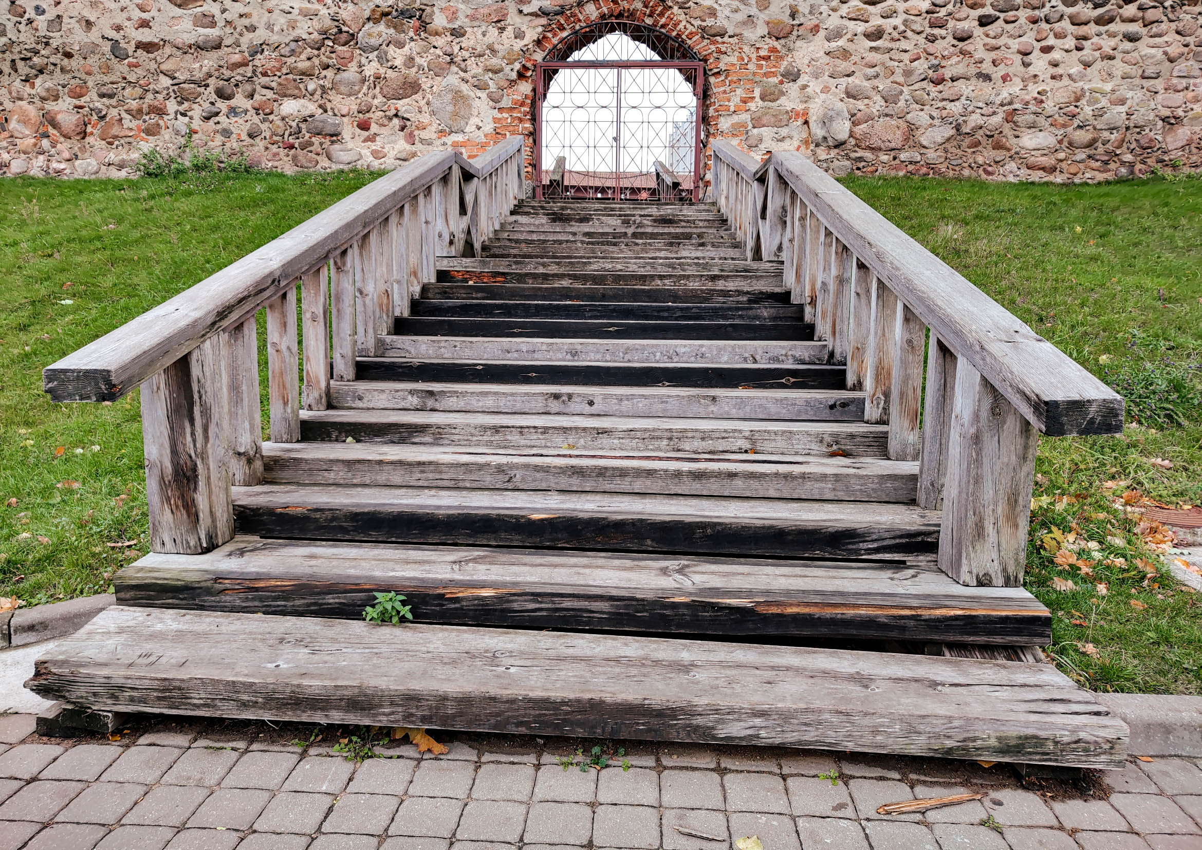 Ва ўсходняй сцяне знаходзяцца два ўваходы: малы (шырыня – 2,5 метры і вышыня – 3 метры), паўцыркульнай формы, зроблены на ўзроўні абрэза падмурка сцяны, і вялікі, які быў зроблены значна пазней (шырыня – 4,5 метры і вышыня – 6 метраў), ён знаходзіцца каля паўночна-ўсходняй вежы на вышыні 2,5 метраў, таксама паўцыркульнай формы. Патрапіць у замак праз вялікі ўваход можна было толькі з дапамогай пад’ёмнага моста.